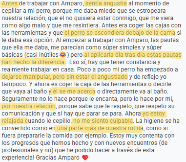 Dedicaros el tiempo, divulgar sobre peluquería canina integrativa y daros las herramientas necesarias para reintroducir la higiene de vuestros perros en vuestras vidas de una forma estable, coherente y sencilla, personalmente me ha devuelto la pasión que creí perder tras tantos años trabajando prácticamente a “perro por hora”.