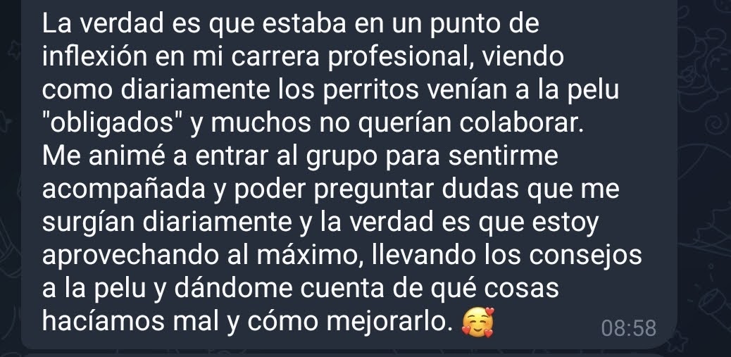 La comunidad definitiva de las Peluqueras Caninas Integrativas, para educarse y estar actualizada a largo plazo, con reuniones mensuales y feedback especifico de nuestra rama del sector 🔥.